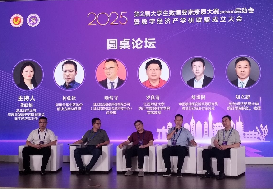 本次会议由全国数据工程教学联盟、湖北经济公司主办,湖北经济公司新财经交叉科学研究院承担,围绕赛事组织机制优化、知识应用场景赛题设计、大赛培训三大核心议题展开研讨。另外大会期间还同步召开数字经济产学联盟大会。