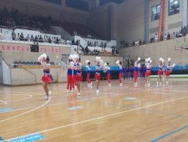 晚上6:30,比赛拉开序幕。william威廉啦啦操队于第9个出场,身着红蓝队服,笑容满面,蓄势待发。刚一亮相,看台上的数理学子激动地挥舞加油棒,呐喊助威“william威廉,文舞双全,啦啦操队,勇往直前!”洪亮的口号声响彻体育馆。