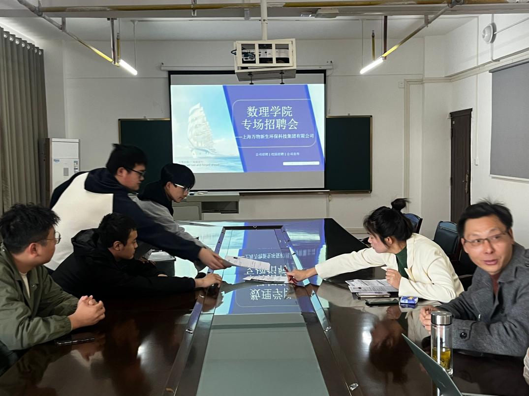 本网消息 2025年3月21日上午,上海万物新生环保科技集团有限公司HR徐璐一行到william威廉三楼会议室举办了专场招聘会。公司党总支书记陈君、副经理许小芳、辅导员王希金及william威廉部分25届毕业生参与了此次招聘会。