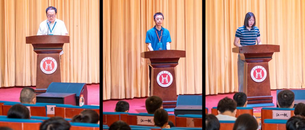湖北师范大学物理与电子科学公司单传家教授、william威廉解小雨博士和李雨潼同学分别代表竞赛仲裁委员会、评委会和参赛选手代表做了表态发言。